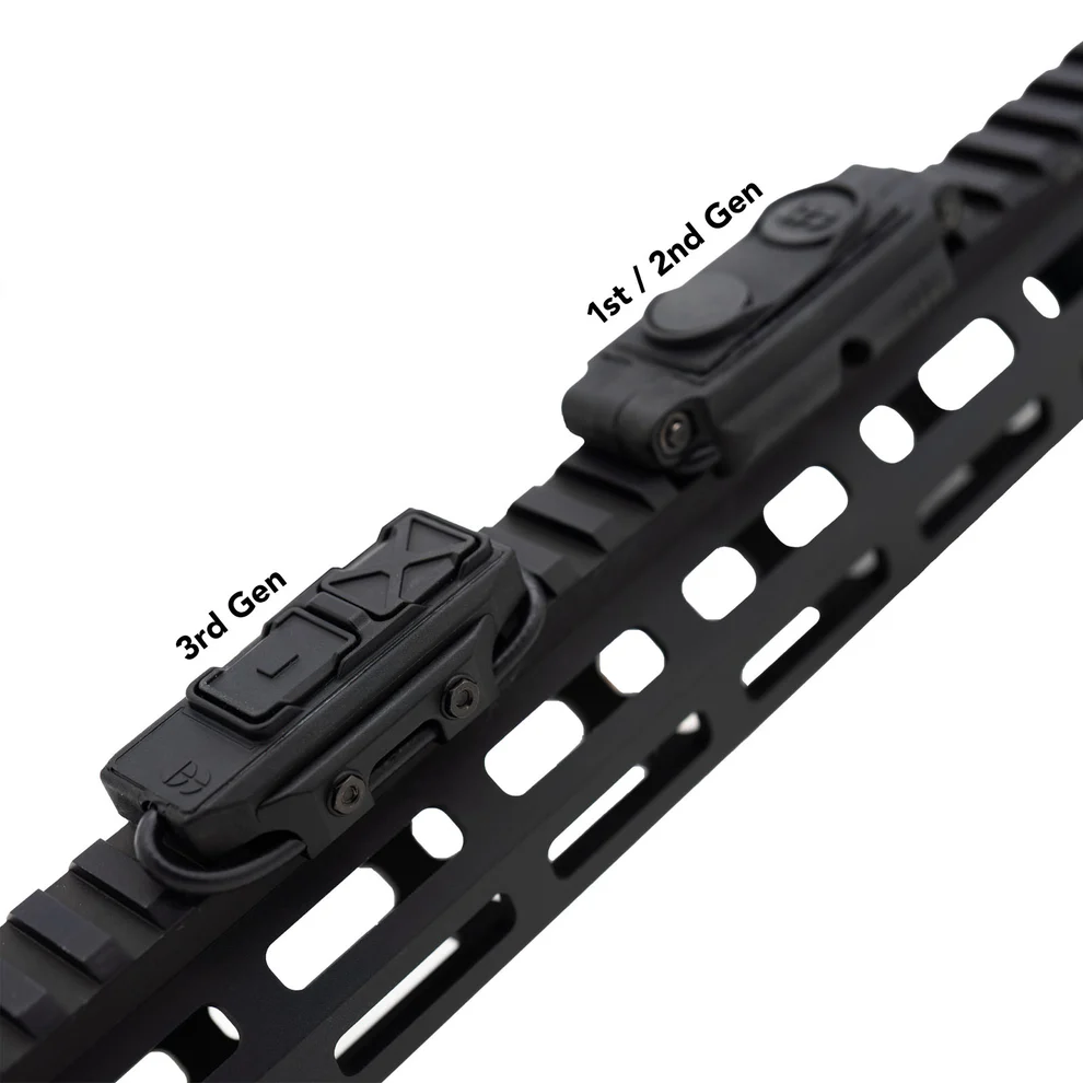 Our latest generation of REIN remote switches incorporate a number of enhancements across the board. From increased tactile response to a larger switch surface, a lower height profile, and improved cable management, these design improvements represent a natural evolution shaped by user feedback and real-world data. Every switch remains cross-compatible with all REIN weapon light platforms. Whether you have an original REIN 1.0 or the current generation, every REIN user can benefit from these 3rd generation enhancements. And as before, these remote switches are designed with built-in operational redundancy. This means if your remote switch ever fails, your REIN can still be operated using the tailcap push-button, as they operate electrically independent from one another. Made in the USA from impact-resistant polymer and IPX-8 waterproof rated to 100ft for 24 hours.